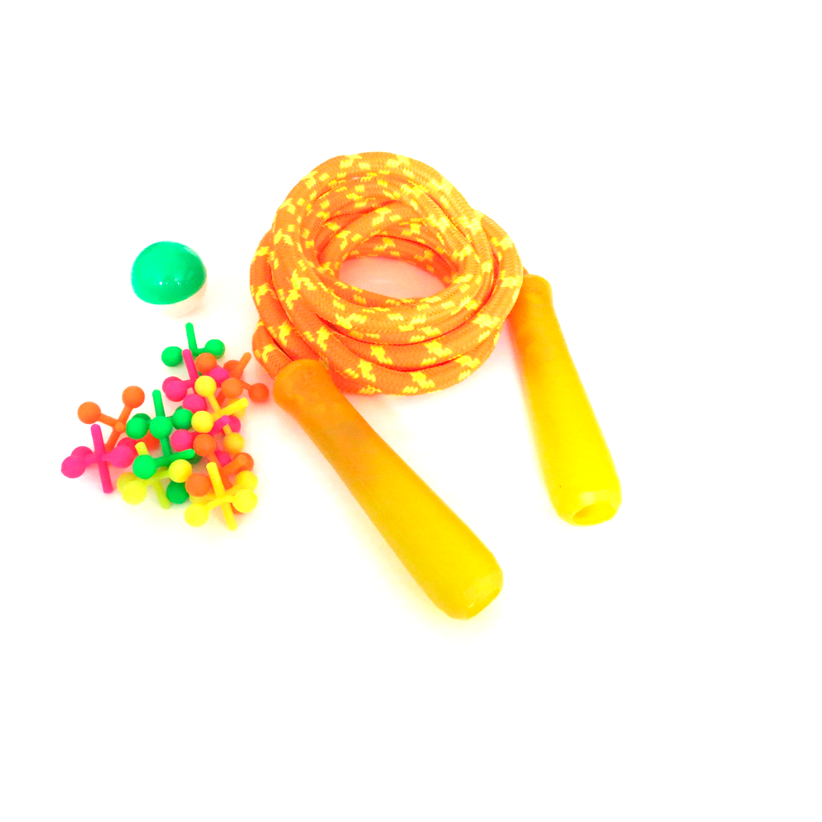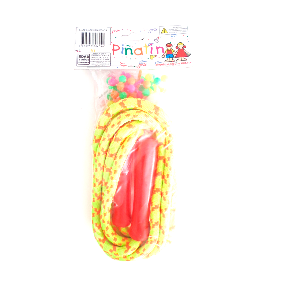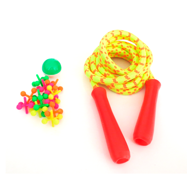 Divertido juego 2 en 1, incluye divertida cuerda de saltar de 2 metros, viene en colores surtidos. Ideal para estimular el desarrollo motor y juego tradicional catapis.